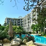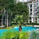 Az 51 m²-es Harmony Grand Resort - Apartament Gut Napospart borbélyüzletet kínál, és csaknem 20 percnyi sétára fekszik egy olyan kiváló családbarát helytől, mint a Sunny Beach Central vidámpark. Az 1 hálószobás apartman biztosít úszómedencét bárszervizzel.